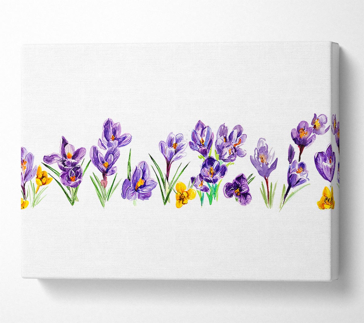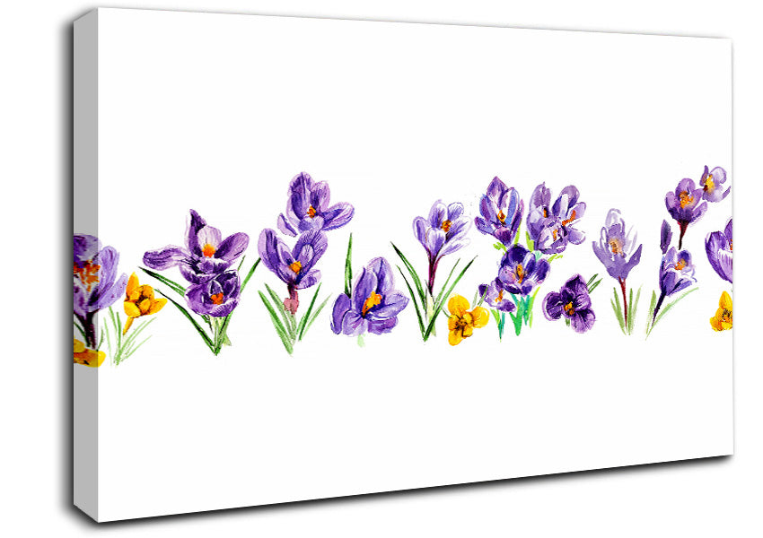 Purple Crocus Canvas Print handmade in the UK. Stretched over a 2 inch thick wooden box frame, ready to hang on your wall.