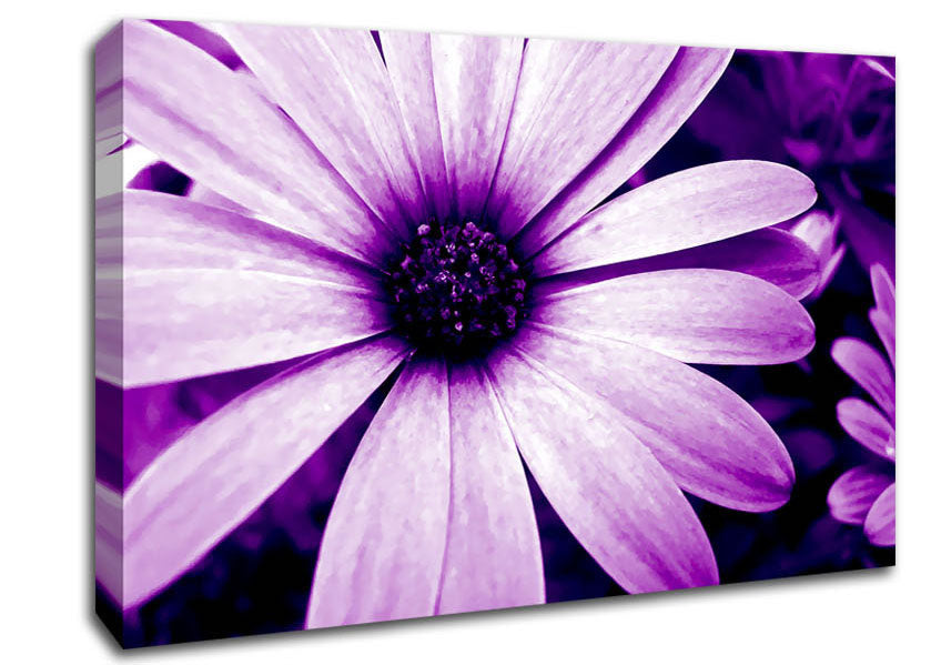 Purple Daisy Petals Canvas Print handmade in the UK. Stretched over a 2 inch thick wooden box frame, ready to hang on your wall.