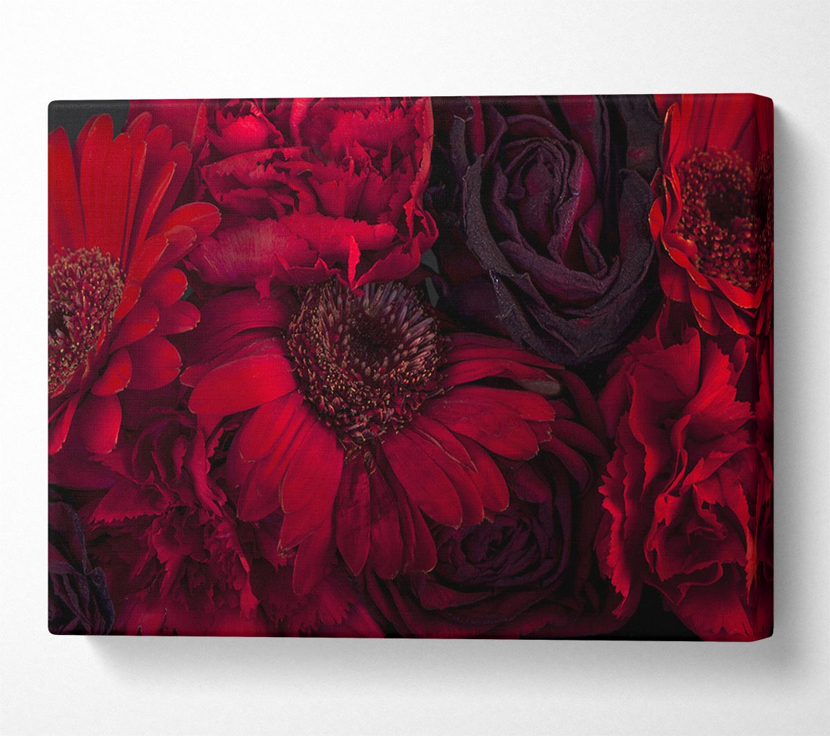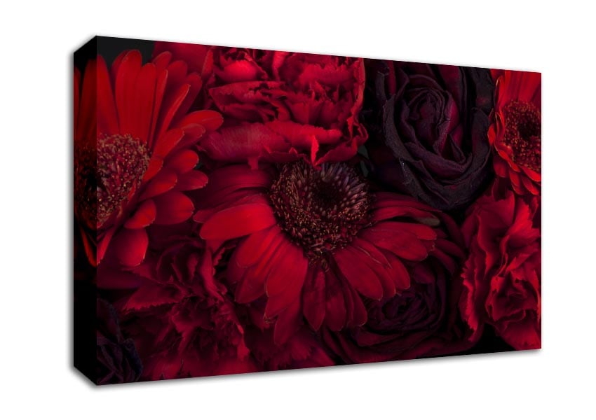 Red dying flowers Canvas Print handmade in the UK. Stretched over a 2 inch thick wooden box frame, ready to hang on your wall.