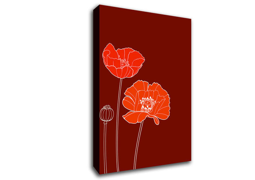 Red Poppies Maroon Canvas Print handmade in the UK. Stretched over a 2 inch thick wooden box frame, ready to hang on your wall.