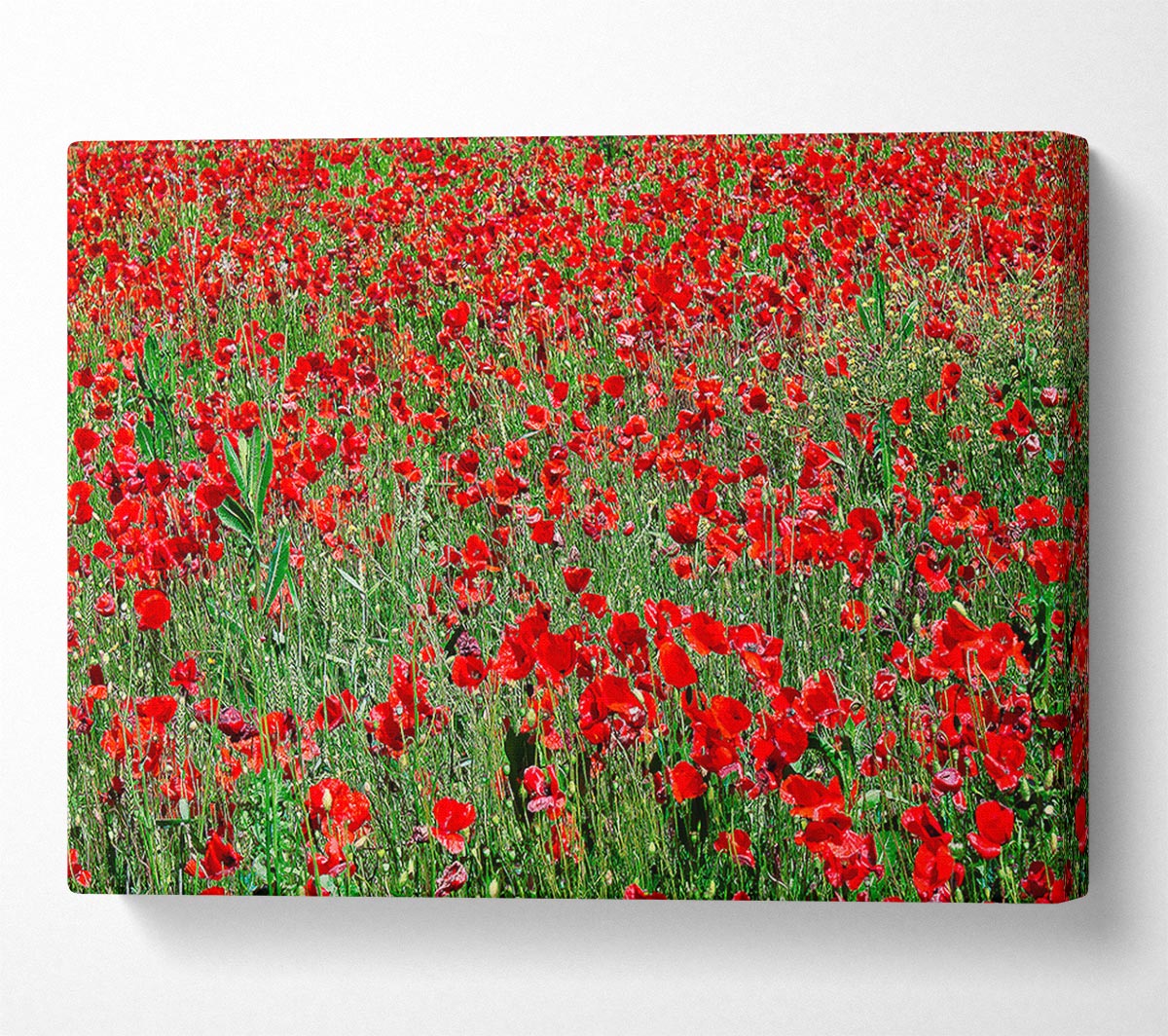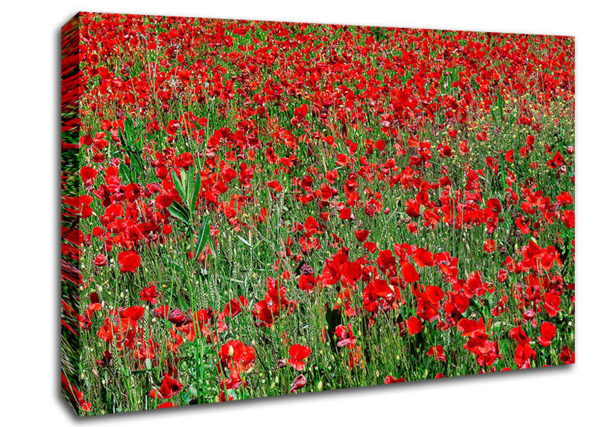 Red Poppy Field Canvas Print handmade in the UK. Stretched over a 2 inch thick wooden box frame, ready to hang on your wall.