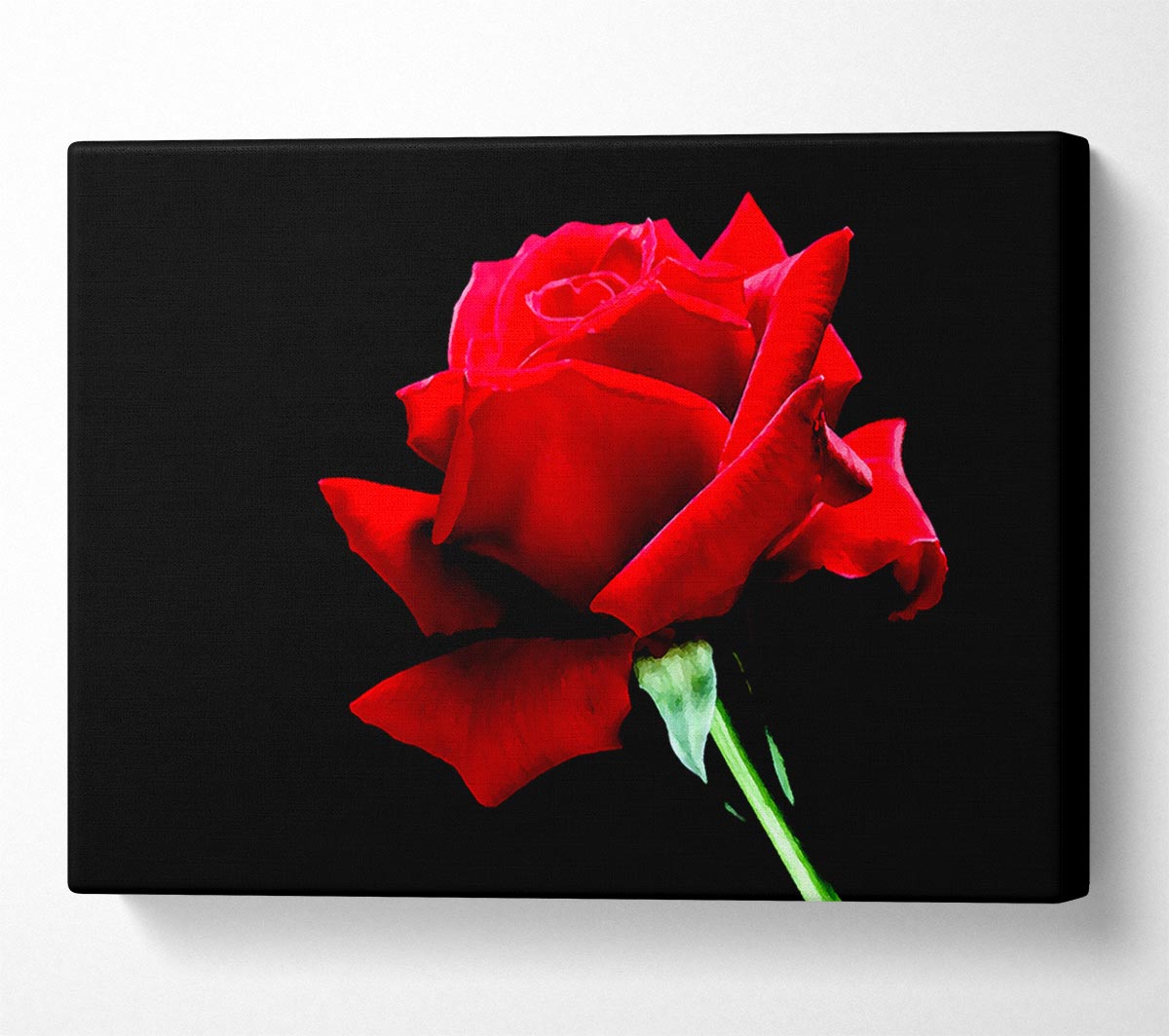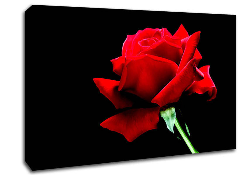 Red Rose Black Velvet Canvas Print handmade in the UK. Stretched over a 2 inch thick wooden box frame, ready to hang on your wall.