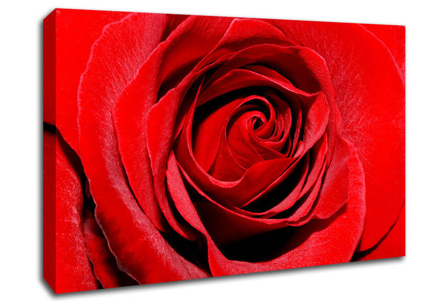 Red Rose Centre Canvas Print handmade in the UK. Stretched over a 2 inch thick wooden box frame, ready to hang on your wall.
