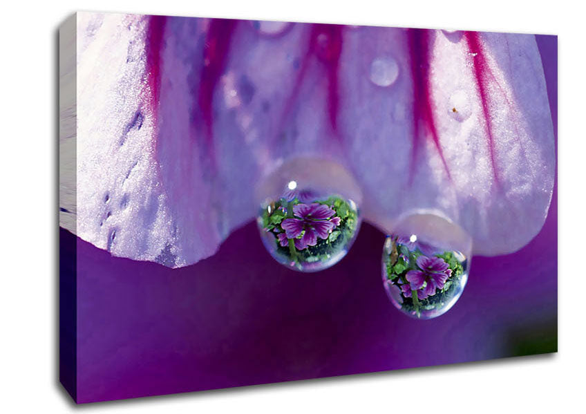 Reflections Of A Water Droplet Canvas Print handmade in the UK. Stretched over a 2 inch thick wooden box frame, ready to hang on your wall.