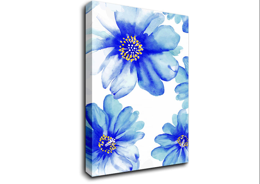 Stunning Blue Petals Canvas Print handmade in the UK. Stretched over a 2 inch thick wooden box frame, ready to hang on your wall.