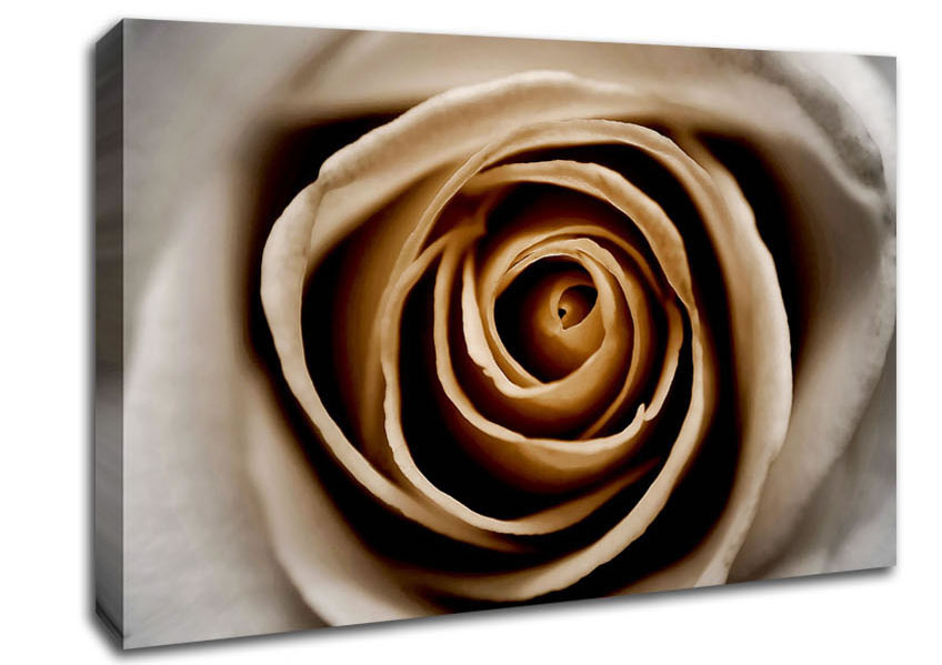 Stunning Sepia Rose Close-Up Canvas Print handmade in the UK. Stretched over a 2 inch thick wooden box frame, ready to hang on your wall.