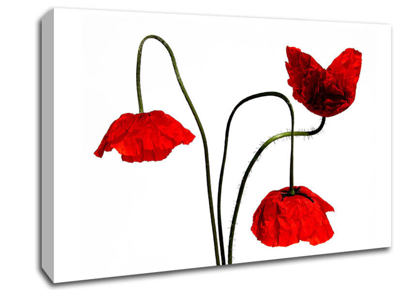 Stunning Trio Of Poppys Canvas Print handmade in the UK. Stretched over a 2 inch thick wooden box frame, ready to hang on your wall.