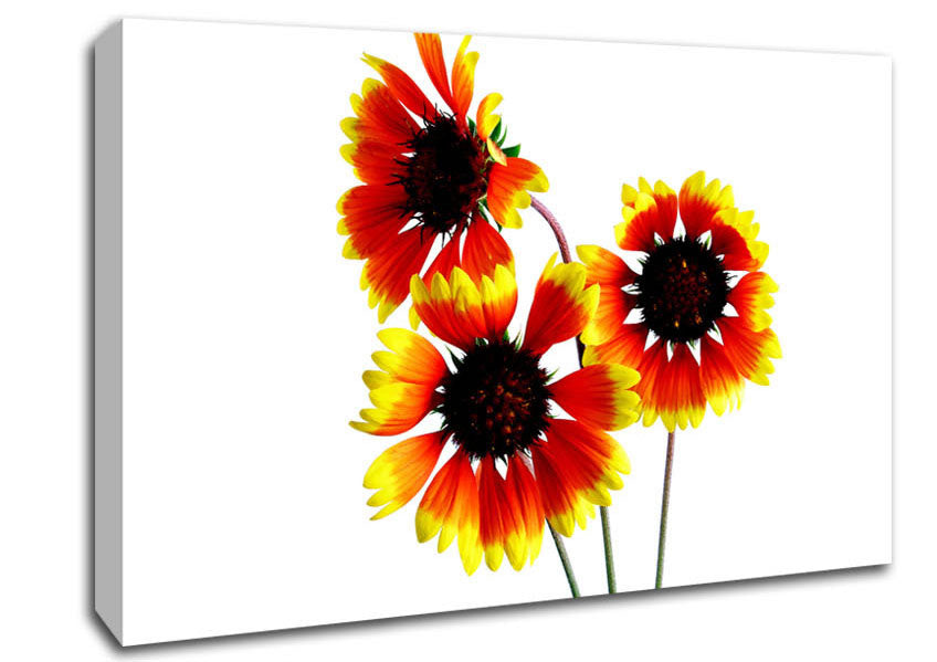 Sun Flower Trio Canvas Print handmade in the UK. Stretched over a 2 inch thick wooden box frame, ready to hang on your wall.