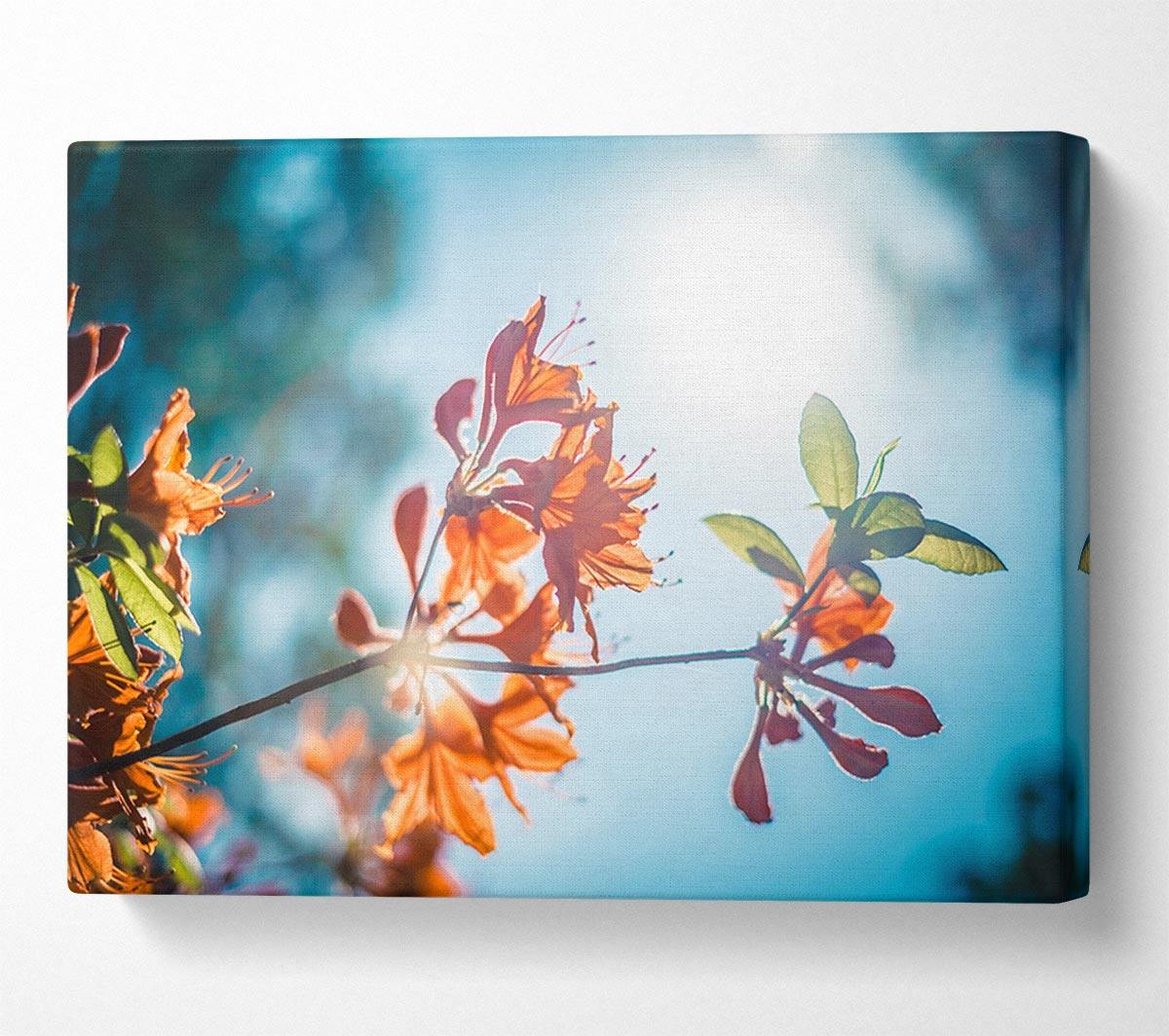 Sun shinging through the twigs and leaves Canvas Print handmade in the UK. Stretched over a 2 inch thick wooden box frame, ready to hang on your wall.