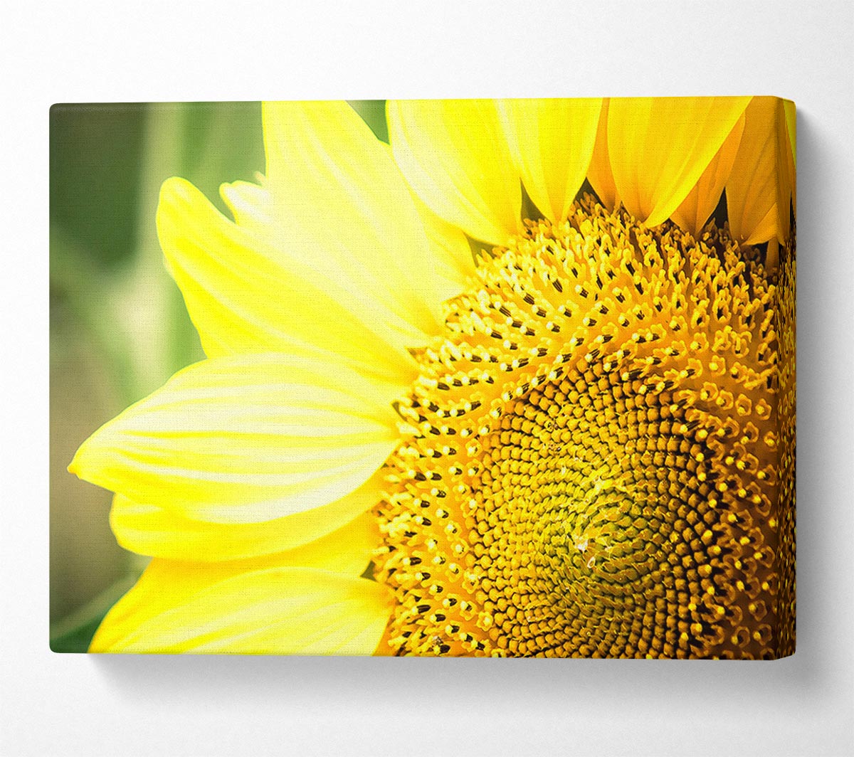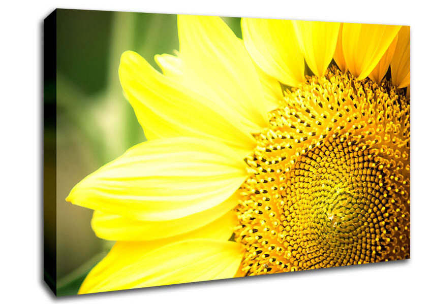 Sunflower Close-up Canvas Print handmade in the UK. Stretched over a 2 inch thick wooden box frame, ready to hang on your wall.