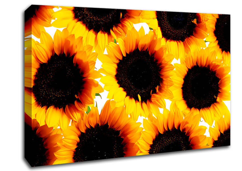 Sunflower Galore Canvas Print handmade in the UK. Stretched over a 2 inch thick wooden box frame, ready to hang on your wall.