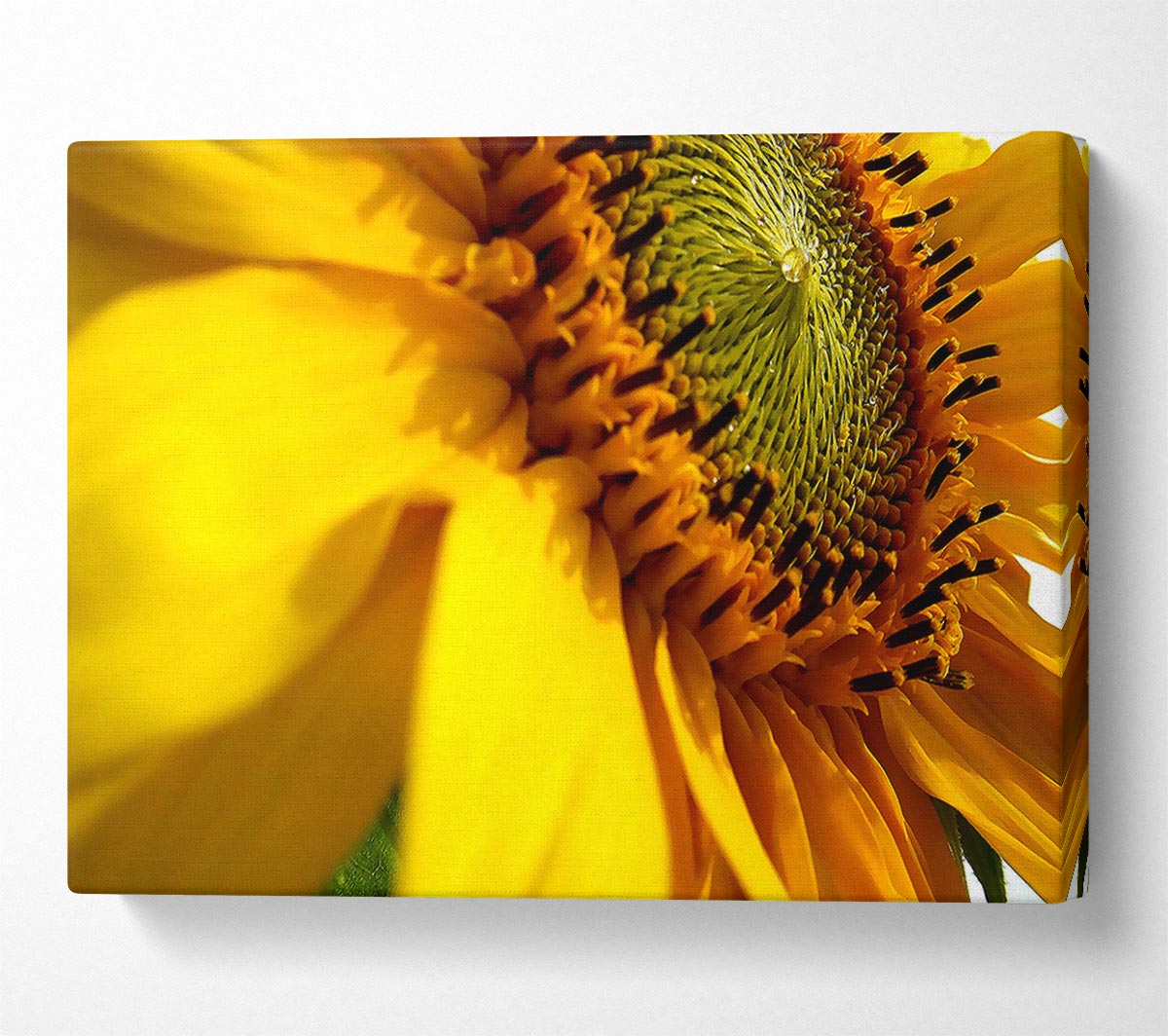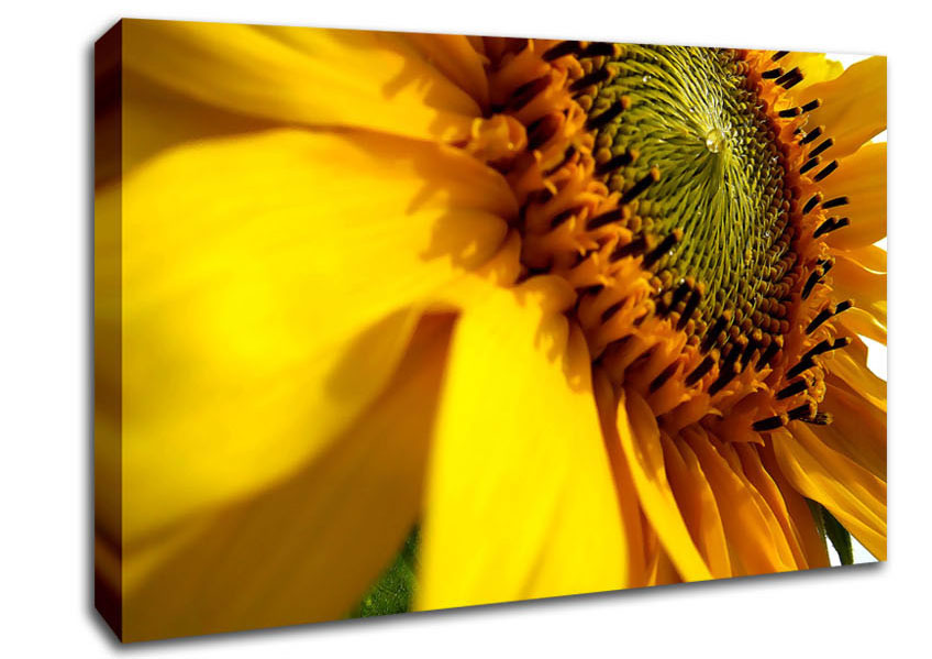 Sunflower Side Canvas Print handmade in the UK. Stretched over a 2 inch thick wooden box frame, ready to hang on your wall.