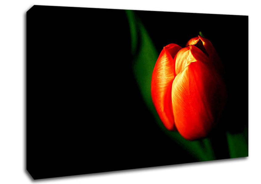 Tulip In Blazing Sun Canvas Print handmade in the UK. Stretched over a 2 inch thick wooden box frame, ready to hang on your wall.