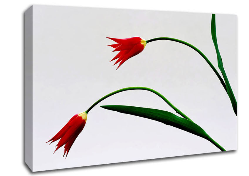 Twin Fire Tulips Canvas Print handmade in the UK. Stretched over a 2 inch thick wooden box frame, ready to hang on your wall.