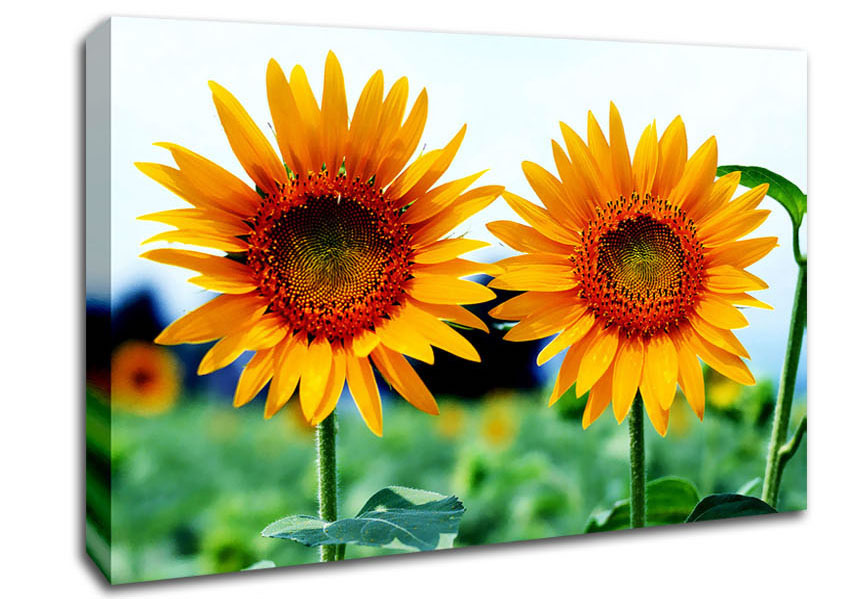 Twin Sunflowers Canvas Print handmade in the UK. Stretched over a 2 inch thick wooden box frame, ready to hang on your wall.