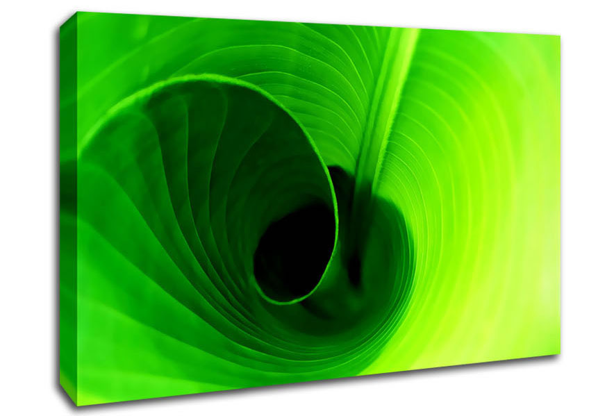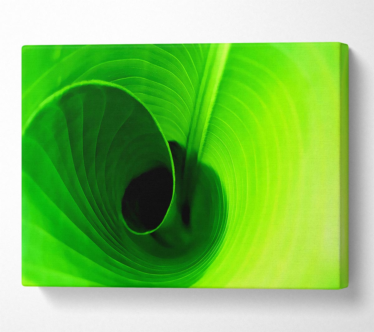 Twist Of A Green Leaf Canvas Print handmade in the UK. Stretched over a 2 inch thick wooden box frame, ready to hang on your wall.