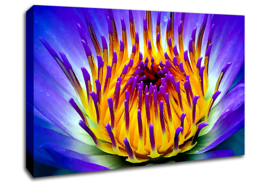 Vibrant Purple Water Lily Canvas Print handmade in the UK. Stretched over a 2 inch thick wooden box frame, ready to hang on your wall.