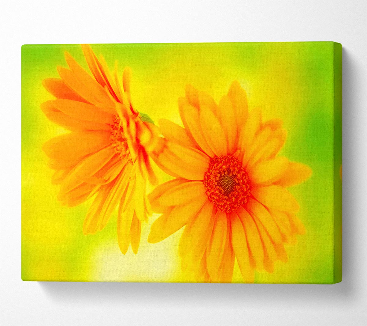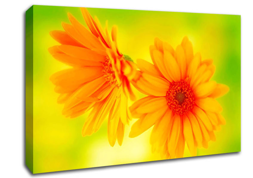 Vibrant Yellow Daisys Canvas Print handmade in the UK. Stretched over a 2 inch thick wooden box frame, ready to hang on your wall.
