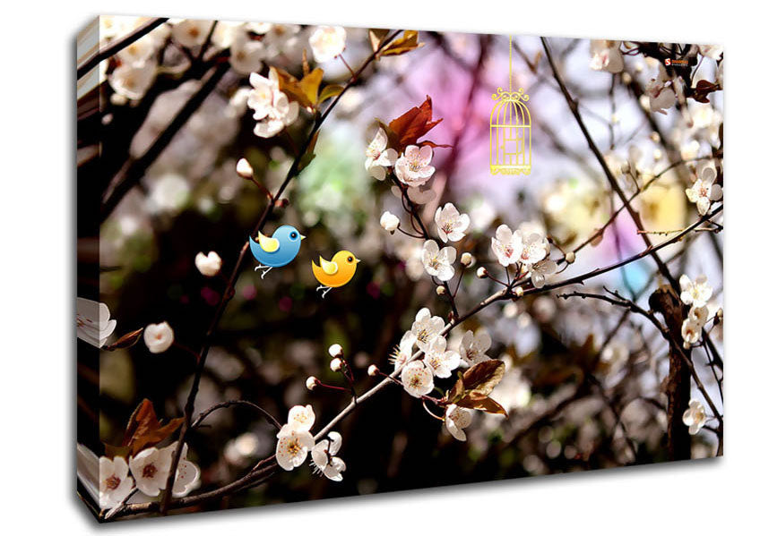 Welcome Spring Canvas Print handmade in the UK. Stretched over a 2 inch thick wooden box frame, ready to hang on your wall.