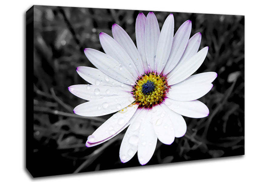 White Daisy On B n W Canvas Print handmade in the UK. Stretched over a 2 inch thick wooden box frame, ready to hang on your wall.
