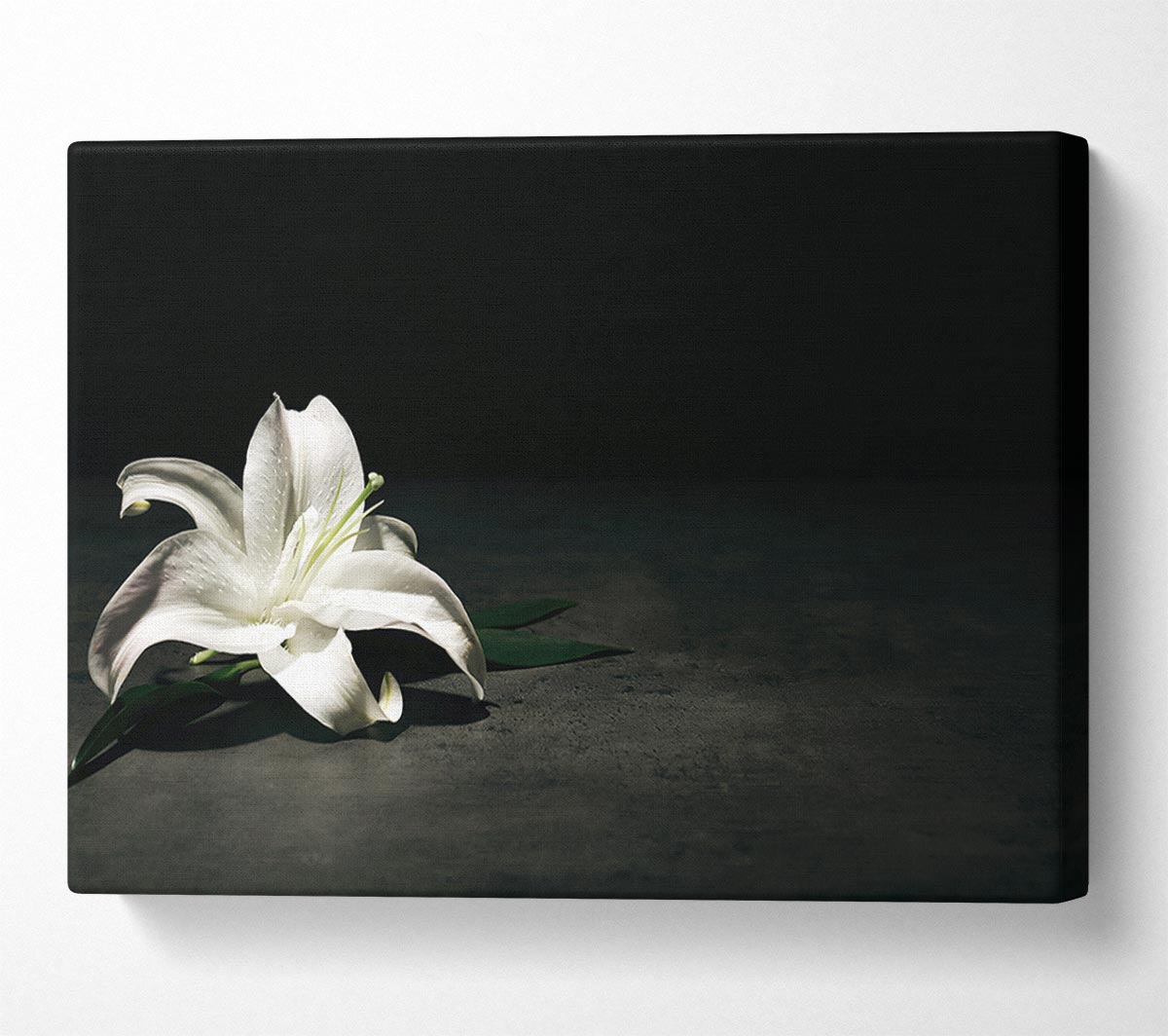 White lilly on the floor Canvas Print handmade in the UK. Stretched over a 2 inch thick wooden box frame, ready to hang on your wall.