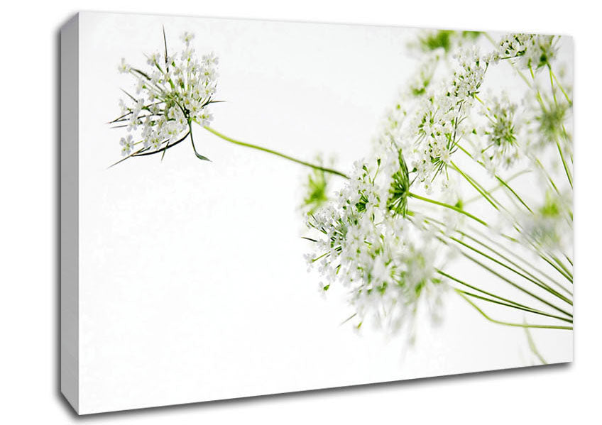 White On White Flowers Canvas Print handmade in the UK. Stretched over a 2 inch thick wooden box frame, ready to hang on your wall.