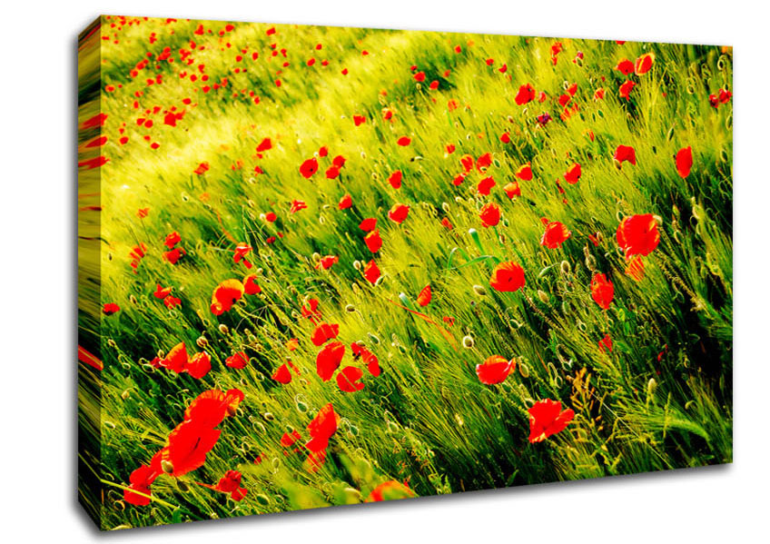 Wild Poppy Field Canvas Print handmade in the UK. Stretched over a 2 inch thick wooden box frame, ready to hang on your wall.