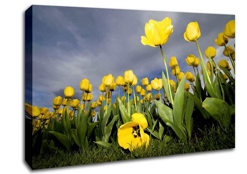 Yellow Daisy Storms Canvas Print handmade in the UK. Stretched over a 2 inch thick wooden box frame, ready to hang on your wall.