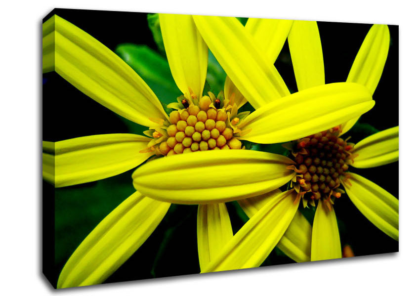 Yellow Star Flowers Canvas Print handmade in the UK. Stretched over a 2 inch thick wooden box frame, ready to hang on your wall.