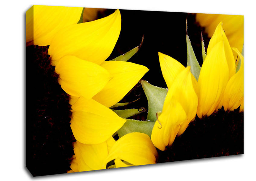 Yellow Sunflower Twins Close-Up Canvas Print handmade in the UK. Stretched over a 2 inch thick wooden box frame, ready to hang on your wall.