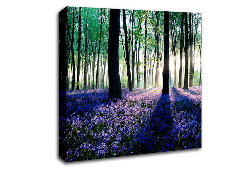 Dawn In Forest Square Canvas Print handmade in the UK. Stretched over a 2 inch thick wooden box frame, ready to hang on your wall.