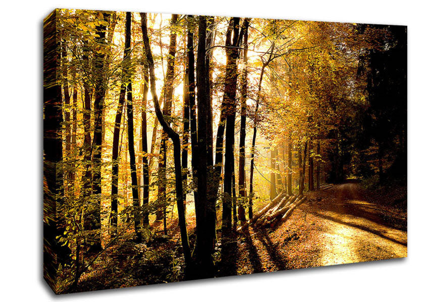 Beautiful Forest Road Autumn Canvas Print handmade in the UK. Stretched over a 2 inch thick wooden box frame, ready to hang on your wall.