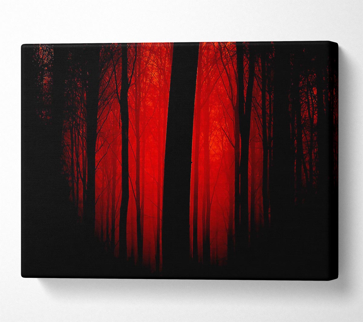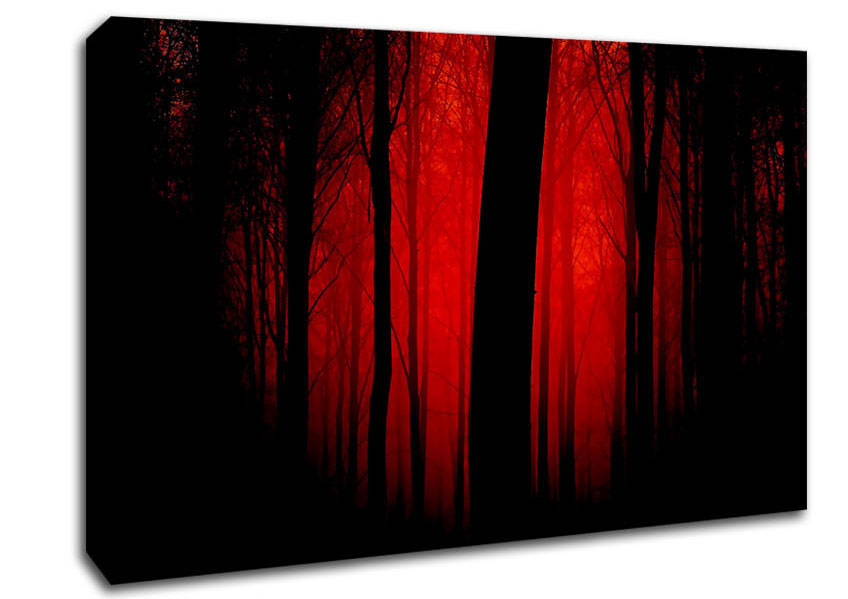Blood Red Forest Canvas Print handmade in the UK. Stretched over a 2 inch thick wooden box frame, ready to hang on your wall.
