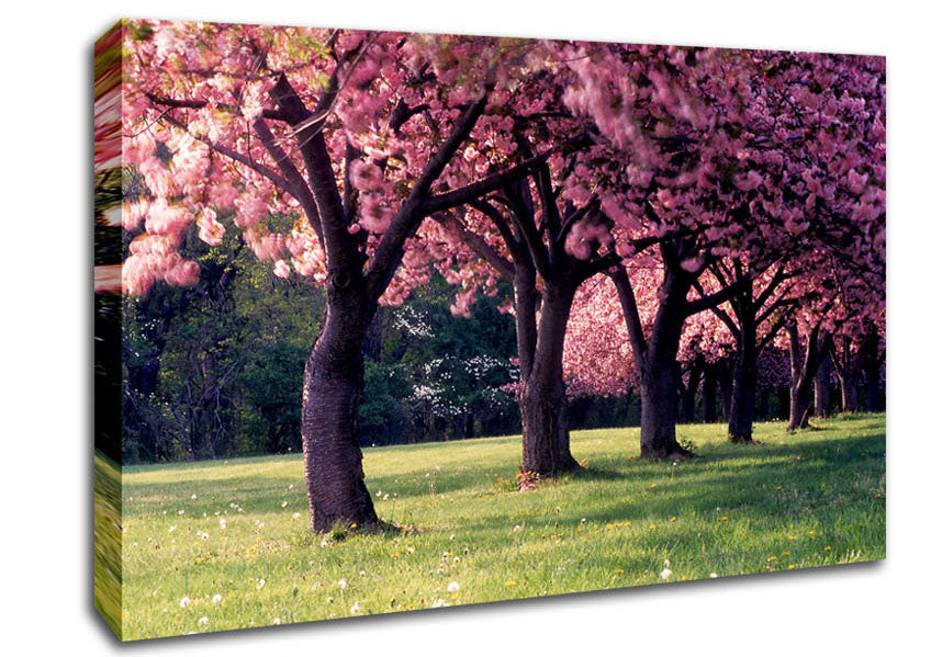 Cherry Blossom Lineup Canvas Print handmade in the UK. Stretched over a 2 inch thick wooden box frame, ready to hang on your wall.