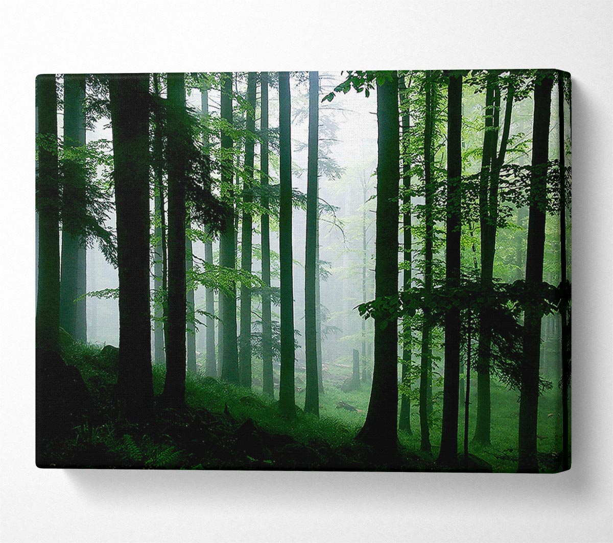 Emerald Forest Mist Canvas Print handmade in the UK. Stretched over a 2 inch thick wooden box frame, ready to hang on your wall.