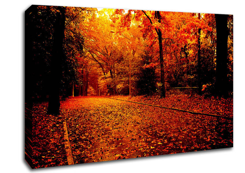 Fall In The Orange Forest Canvas Print handmade in the UK. Stretched over a 2 inch thick wooden box frame, ready to hang on your wall.