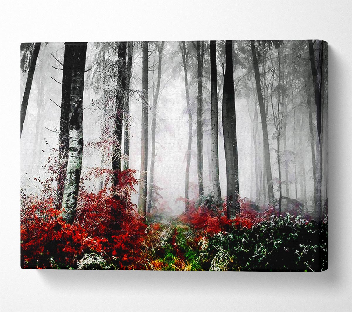 Forest Mist Morning Canvas Print handmade in the UK. Stretched over a 2 inch thick wooden box frame, ready to hang on your wall.