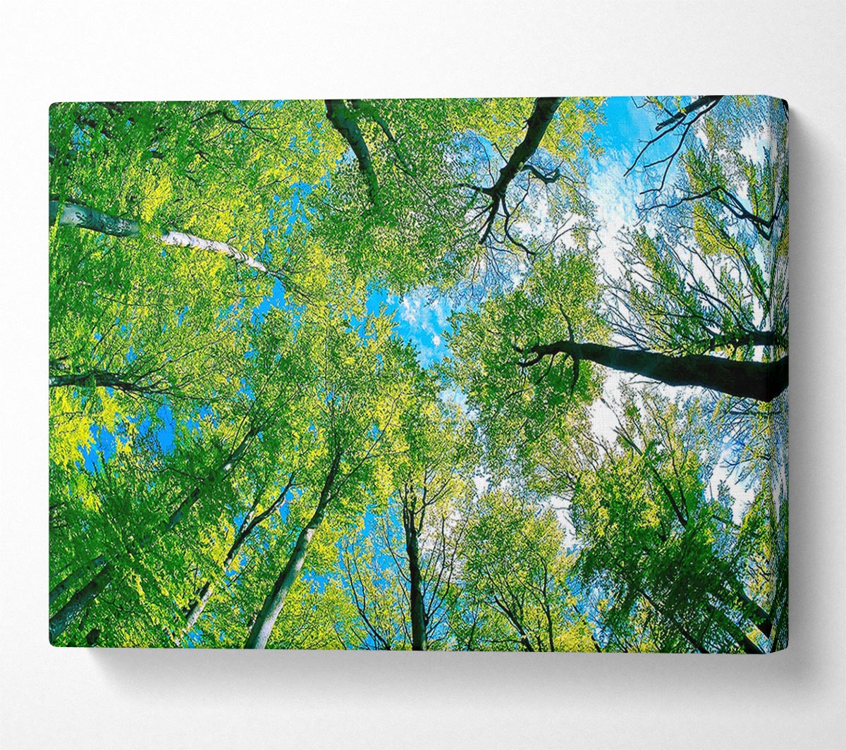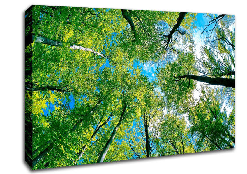 Forest Sky View Canvas Print handmade in the UK. Stretched over a 2 inch thick wooden box frame, ready to hang on your wall.