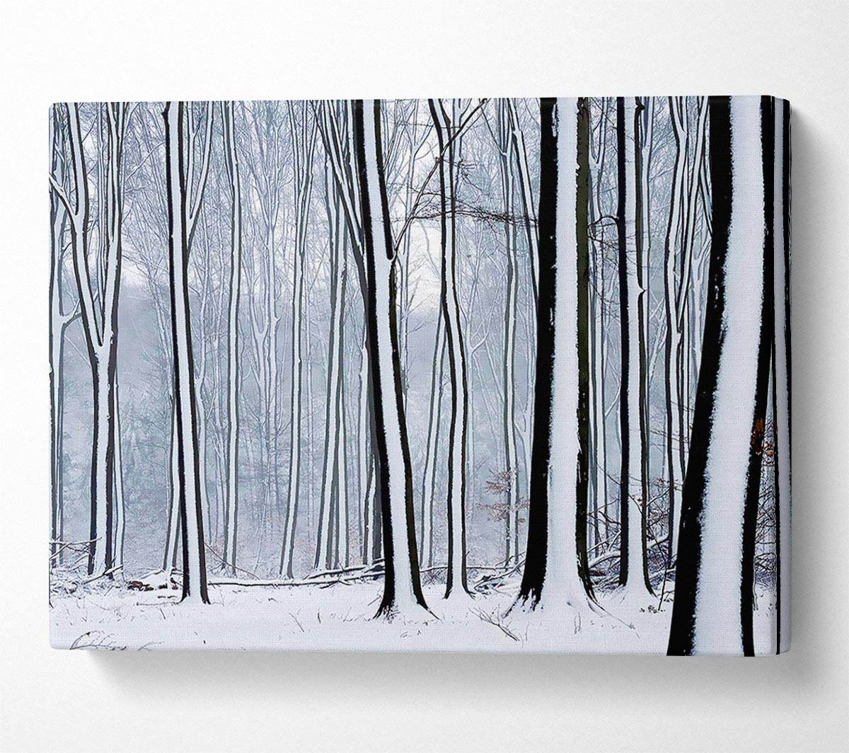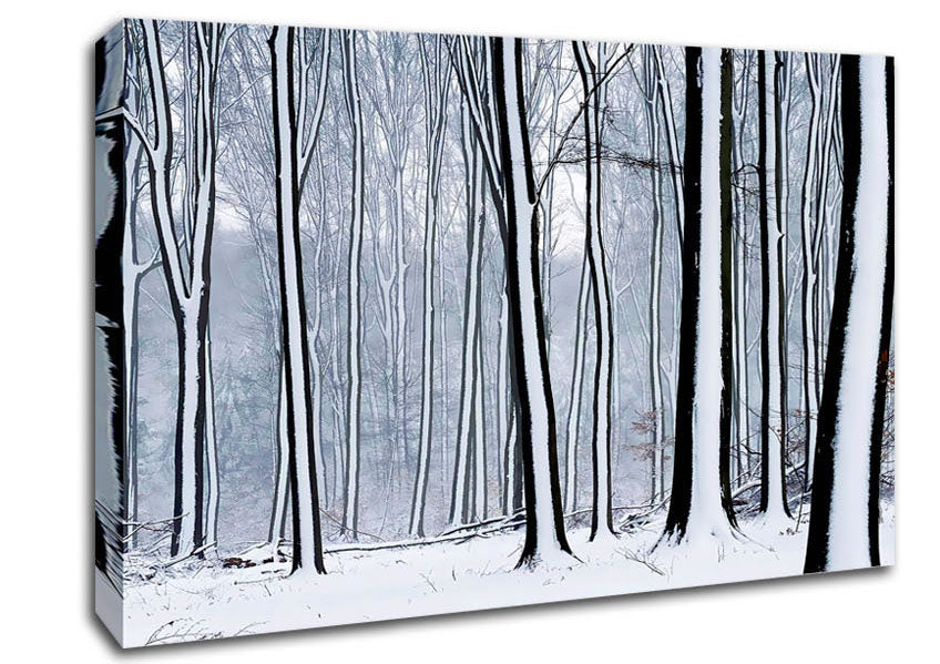Forest Snow Trees Canvas Print handmade in the UK. Stretched over a 2 inch thick wooden box frame, ready to hang on your wall.