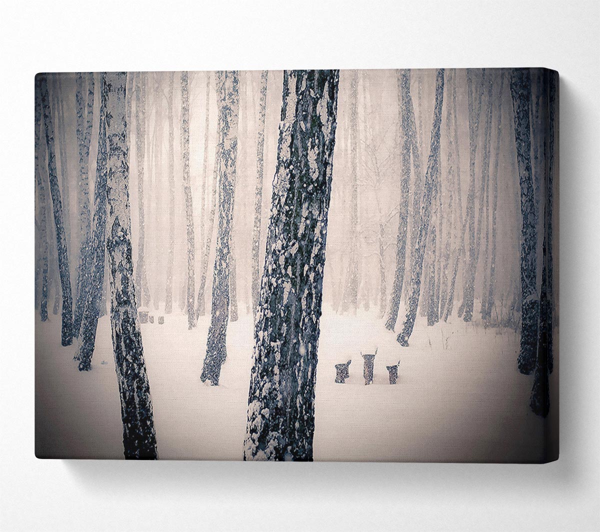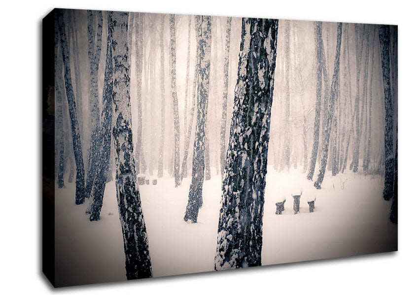 Forest Snowing Canvas Print handmade in the UK. Stretched over a 2 inch thick wooden box frame, ready to hang on your wall.