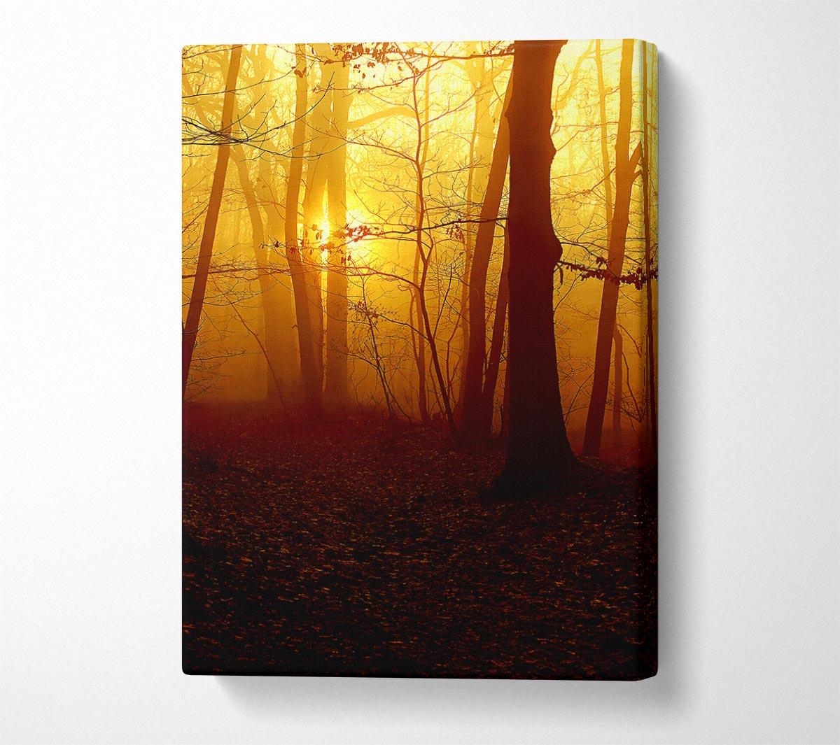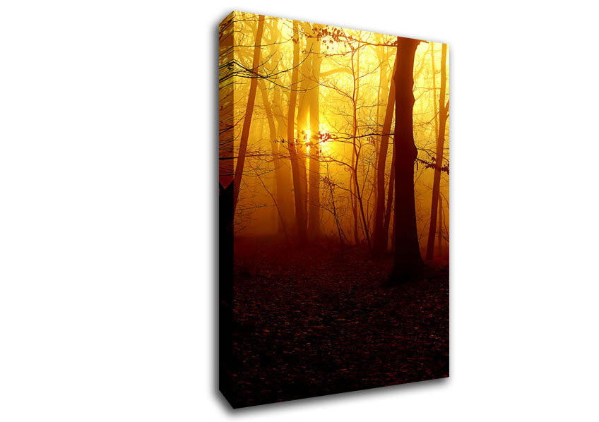 Golden Forest At First Light Canvas Print handmade in the UK. Stretched over a 2 inch thick wooden box frame, ready to hang on your wall.