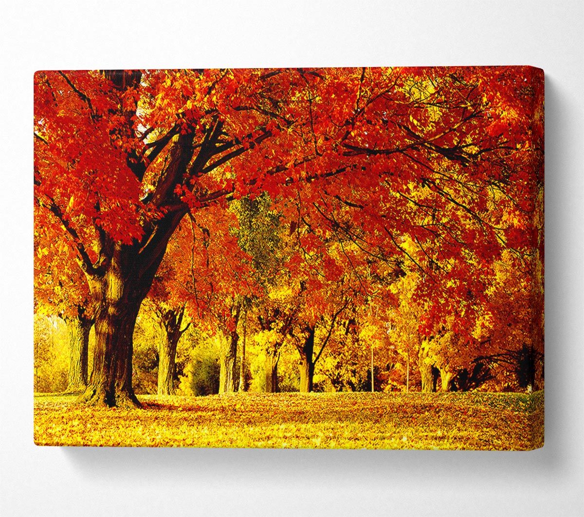 Golden Woodland Walk Canvas Print handmade in the UK. Stretched over a 2 inch thick wooden box frame, ready to hang on your wall.