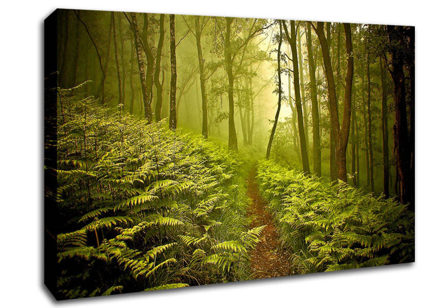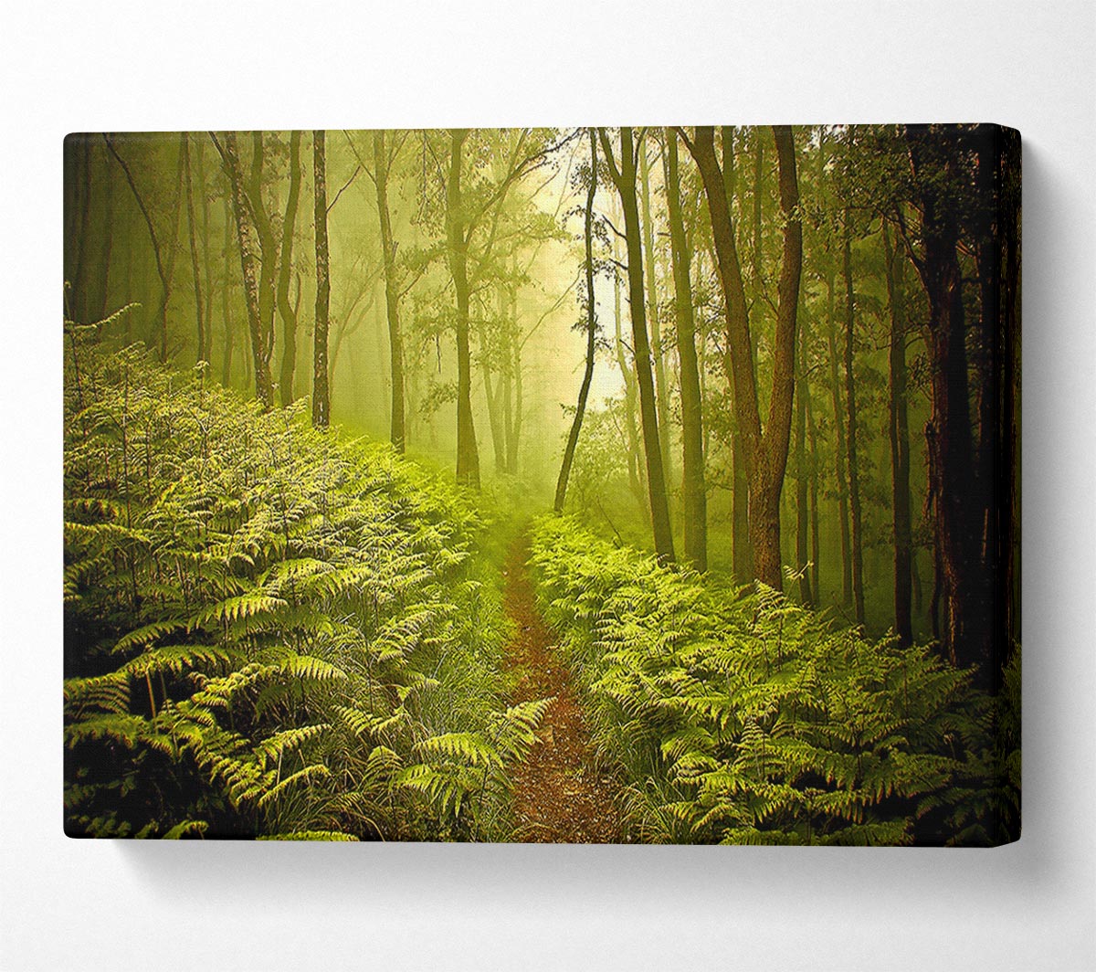 Green Forest Path Canvas Print handmade in the UK. Stretched over a 2 inch thick wooden box frame, ready to hang on your wall.