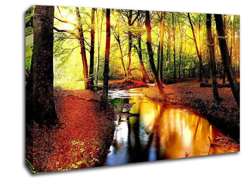 Impressive Autumn Stream Canvas Print handmade in the UK. Stretched over a 2 inch thick wooden box frame, ready to hang on your wall.