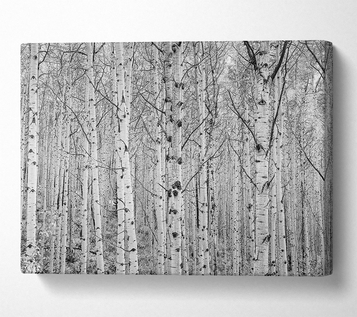 Just Silver Birch Canvas Print handmade in the UK. Stretched over a 2 inch thick wooden box frame, ready to hang on your wall.