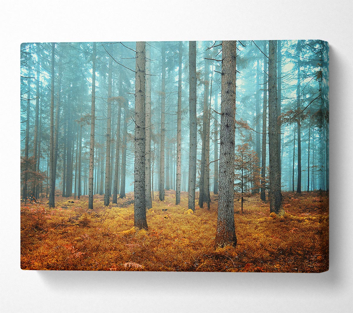 Misty Forest Glow Canvas Print handmade in the UK. Stretched over a 2 inch thick wooden box frame, ready to hang on your wall.