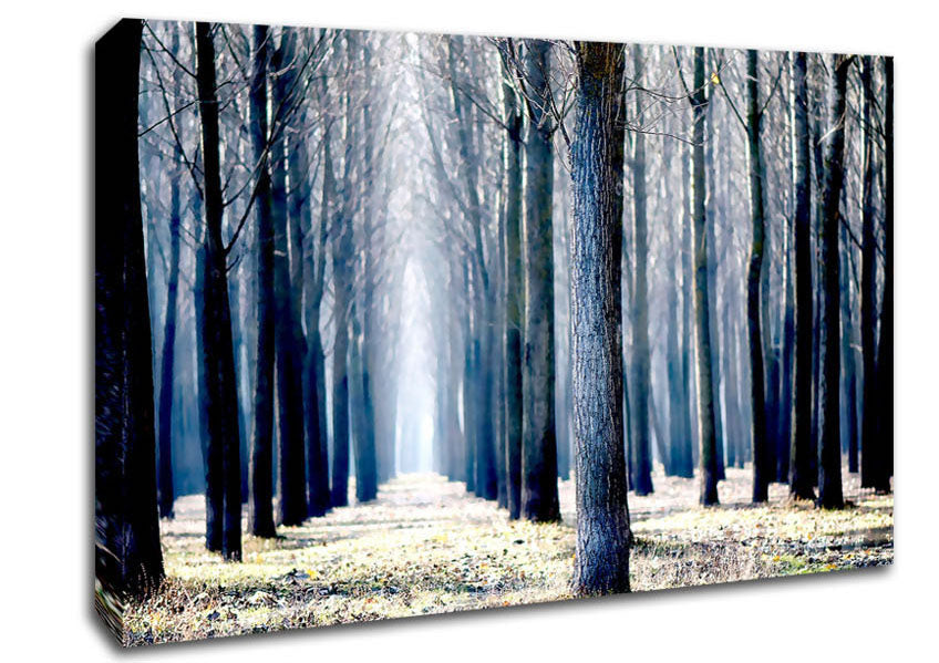 Trees Line-up In Winter Canvas Print handmade in the UK. Stretched over a 2 inch thick wooden box frame, ready to hang on your wall.
