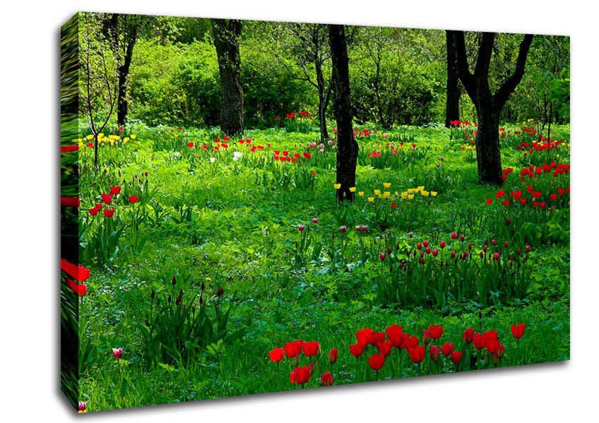 Tulip Woodland Canvas Print handmade in the UK. Stretched over a 2 inch thick wooden box frame, ready to hang on your wall.