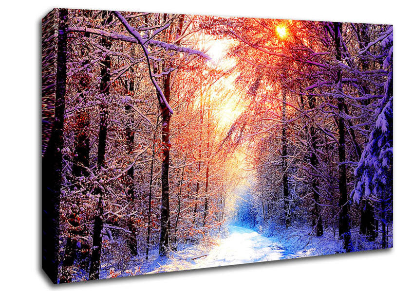 Winter Sun Blaze Canvas Print handmade in the UK. Stretched over a 2 inch thick wooden box frame, ready to hang on your wall.