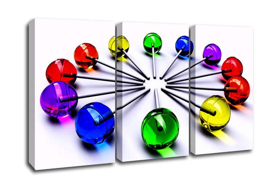 Lollypop Madness 3 Panel Canvas Print handmade in the UK. Stretched over a 2 inch thick wooden box frame, ready to hang on your wall.